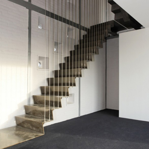 2019 High Quality Modern 80mm Wood Tread Prefabricated Stairs Steel Steel Staircase Design Home Floating Stairs